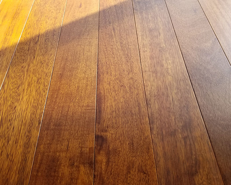 菠蘿格是生長在天堂雨林中的珍貴熱帶硬木,需要80年左右才成材,每一公頃原始森林中只能發(fā)現(xiàn)1-5棵,非常稀少。心邊材區(qū)別析明顯,心材暗紅褐色,略有深色紋理,邊材淡黃色,厚約3-4cm,生長年輪明顯。其木材具有光澤,有樹脂氣味,摸起來手感好,并略能感覺到油性,甚至摸后手上有余香縈繞。紋理直,有時呈混亂的波紋狀,另外紋理中有帶金色,實是一種礦物質,俗稱“金點”、“黃金線”,這是判斷印尼菠蘿格真假的最簡單的一種方法。結構粗而均勻,干縮小,木材重而硬,強度甚高,也屬于防腐木種類,故木材耐腐性很強,經常用于室外木作,例如戶外木橋、木欄桿等,屬于上等防腐木材。菠蘿格以穩(wěn)定性著稱,在木地板現(xiàn)有材種中穩(wěn)定性最佳性價比材料,是知名度比較高的東南亞樹種,性價比高,深受國人的喜愛,尤其是海南人的青睞。所以,菠蘿格也被人們稱為“天堂雨林的寶石”。